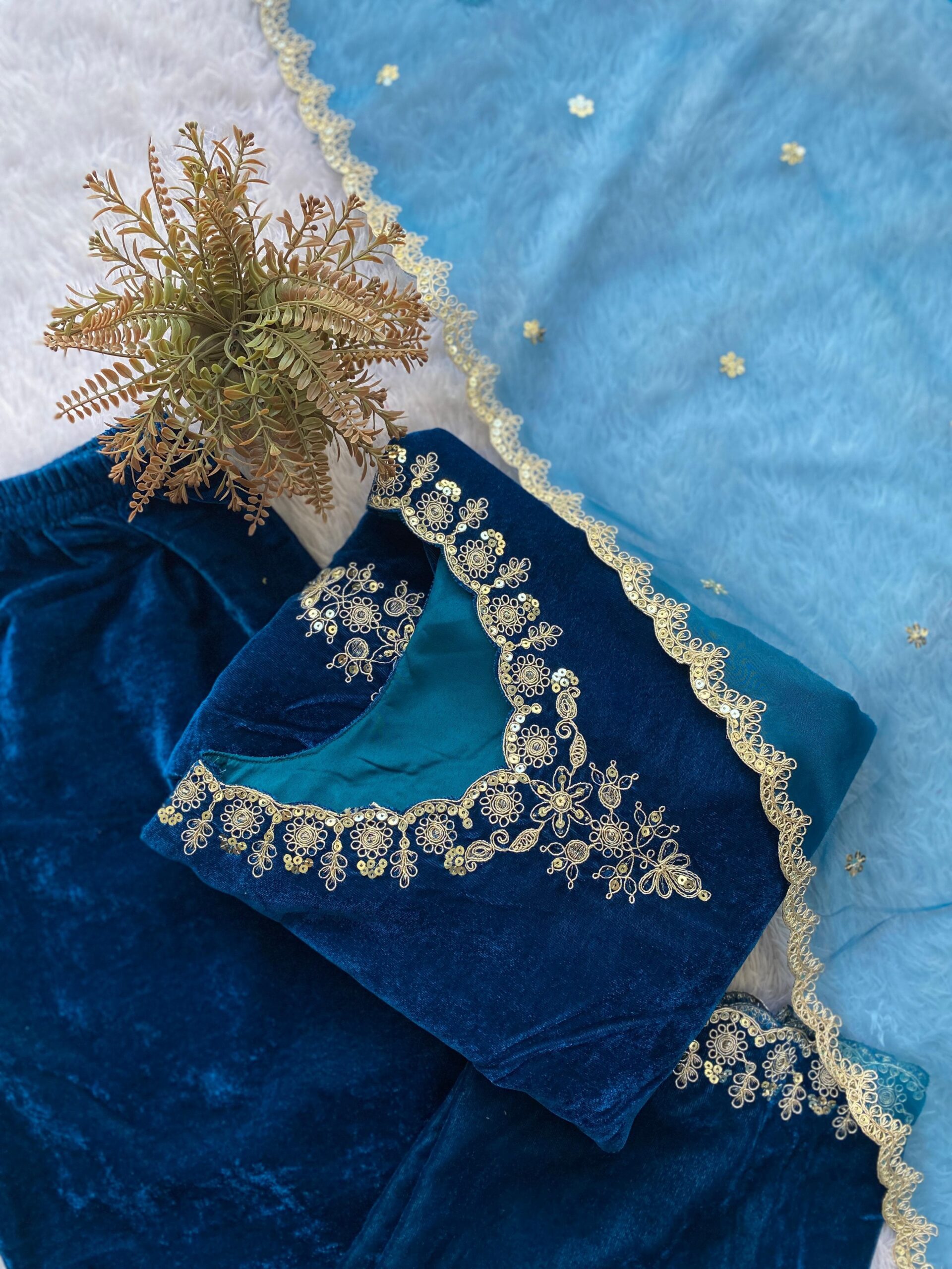 πΈ Velvet Palazzo with Embroidered Finish.