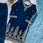 Indulge in timeless elegance with this premium Velvet Kurta Palazzo Set, featuring exquisite Cording Sequence Embroidery. Crafted for winter celebrations, this ensemble combines rich textures with refined detailing.