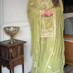 Faux Georgette Ensemble With Heavy Embroidery & Sequence Work