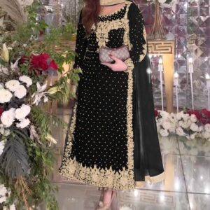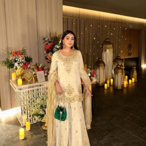 A beautifully crafted Designer 3-Piece Koti-Palazzo-Blouse Set, detailed with luxurious Sequin Embroidery, perfect for weddings & celebrations.
