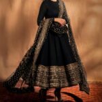 Gown – Chinon Silk with stunning Sequins & Zari Embroidery. Flair is 3-meters for a regal look.