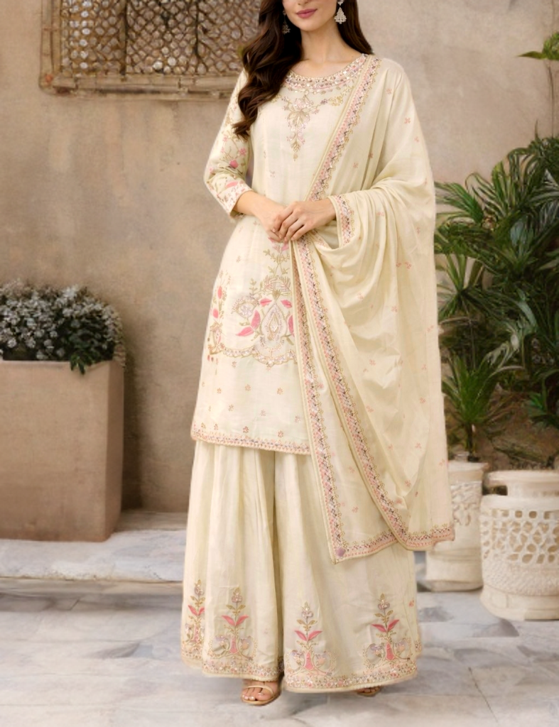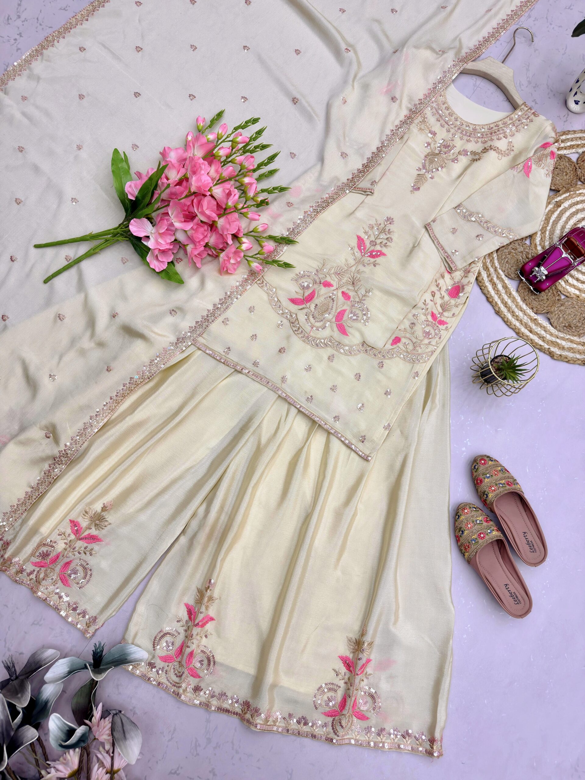 Festive Wear Chinon Silk Top, Dupatta & Gharara Set
