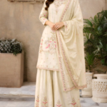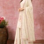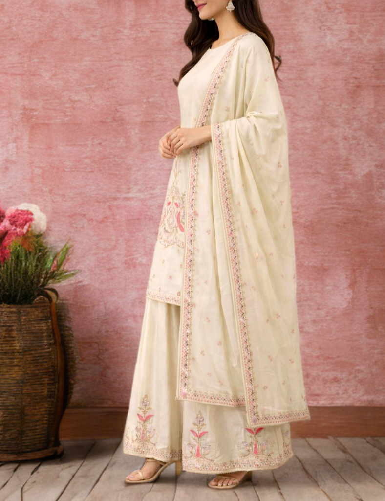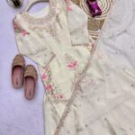Step into elegance with this premium Heavy Chinon Silk 3-Piece Set, beautifully adorned with fine thread and sequin embroidery for a rich festive look.
