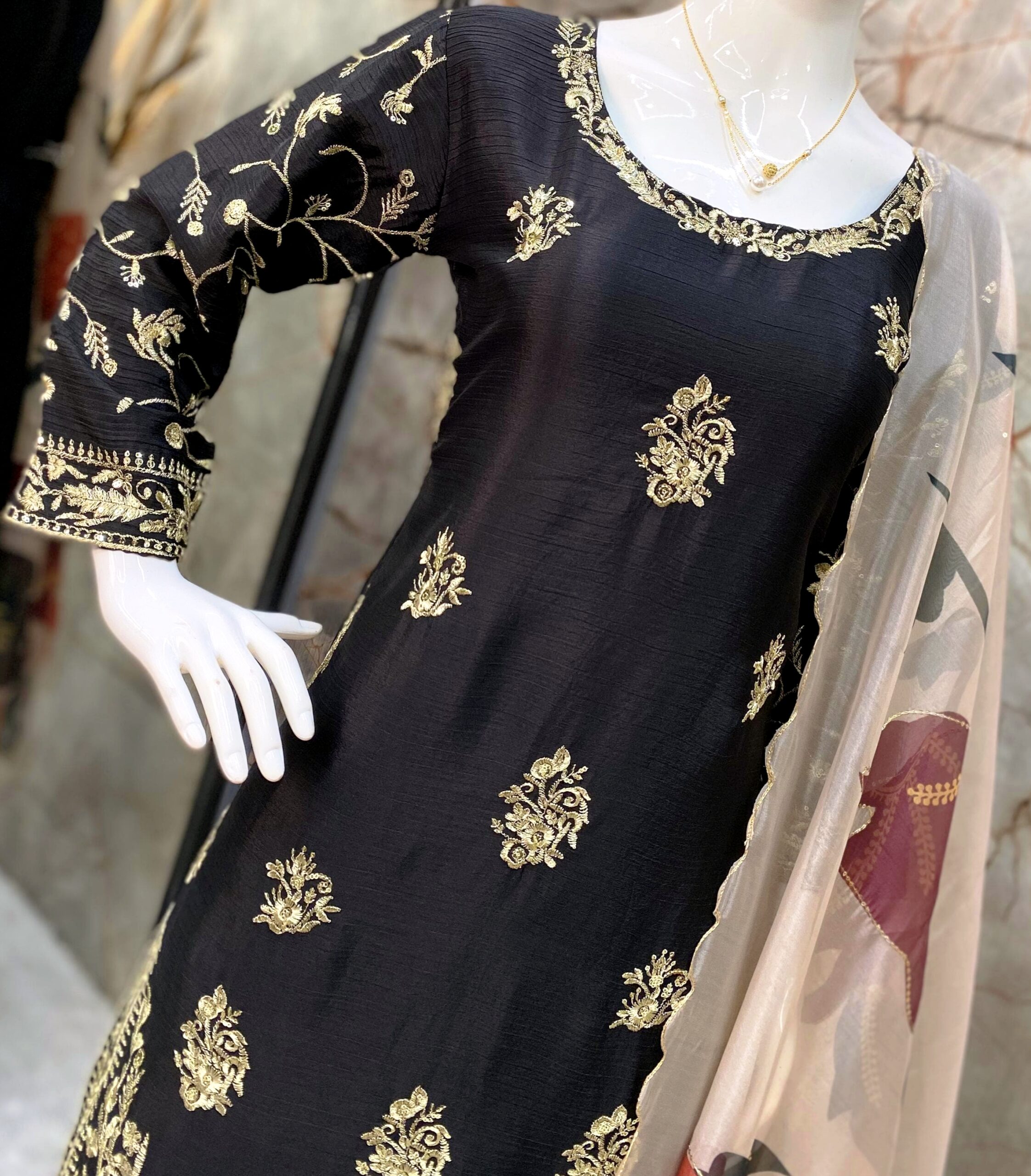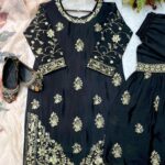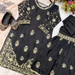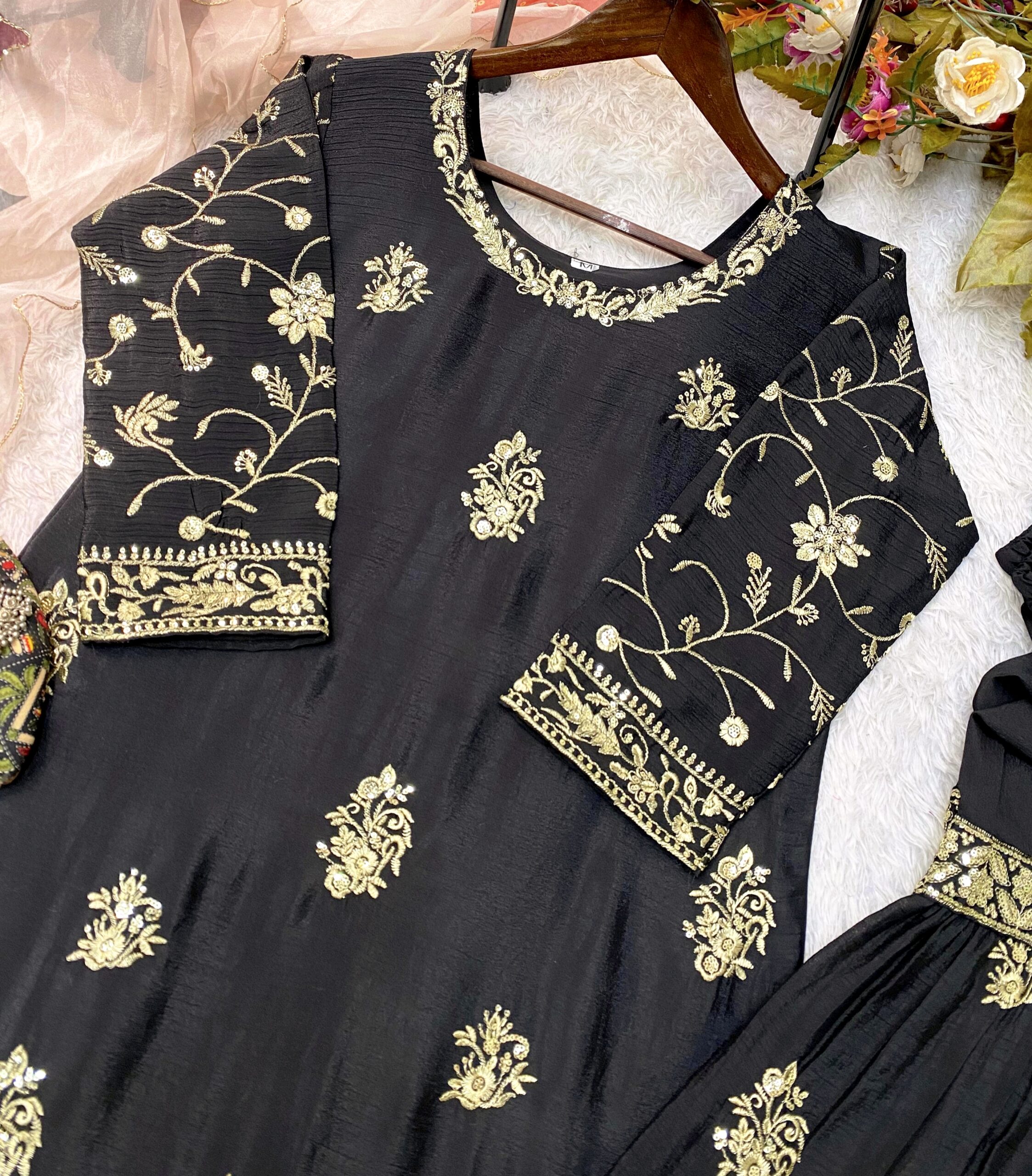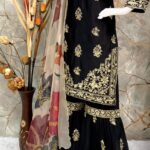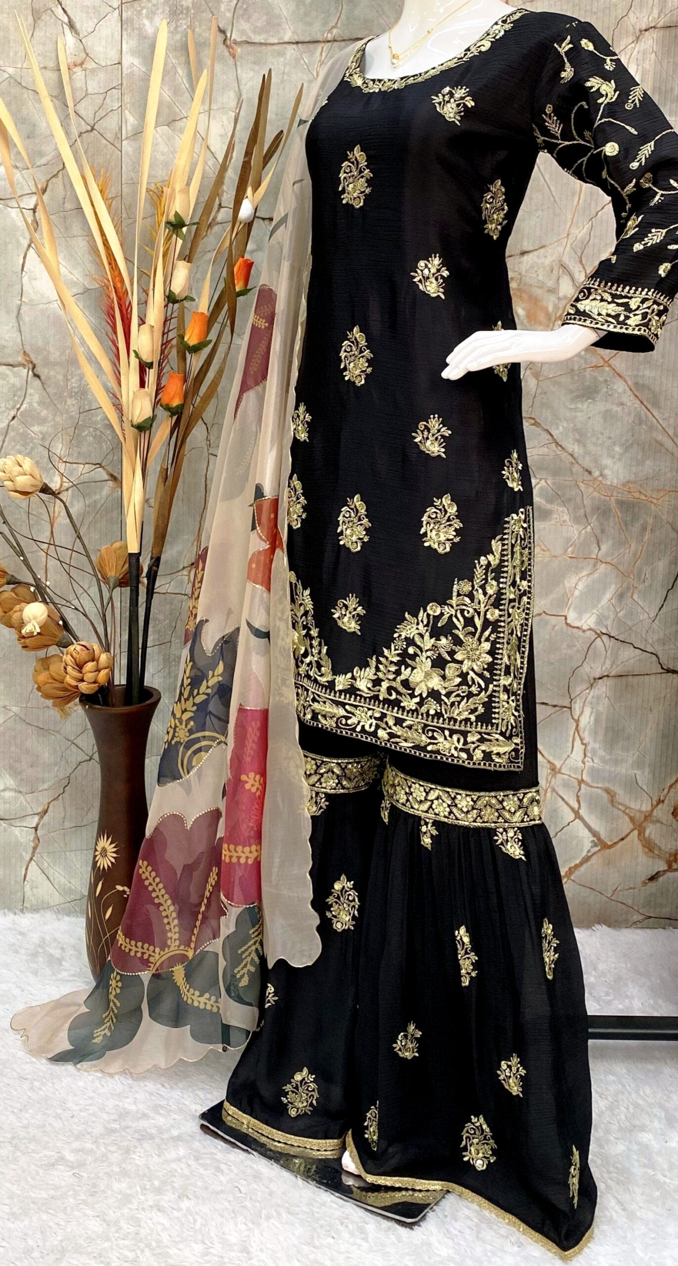 Crafted in premium Chinon with rich sequence embroidery, paired with a full-flair gharara and elegant organza dupatta β a perfect pick for weddings & festive soirΓ©es.