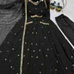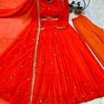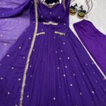 Gown made from Faux Georgette with exquisite 5 mm sequins embroidery work, full sleeves, Length is 52 inches, flair is 4 meters.