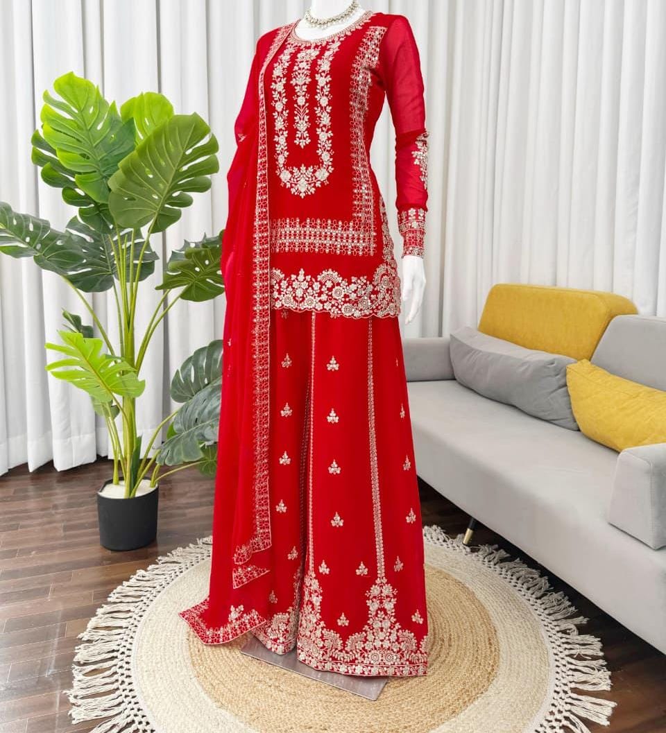 Step into style with this beautifully crafted Designer Palazzo Set, designed to bring out your inner diva at festive celebrations, weddings, or any special occasion.
