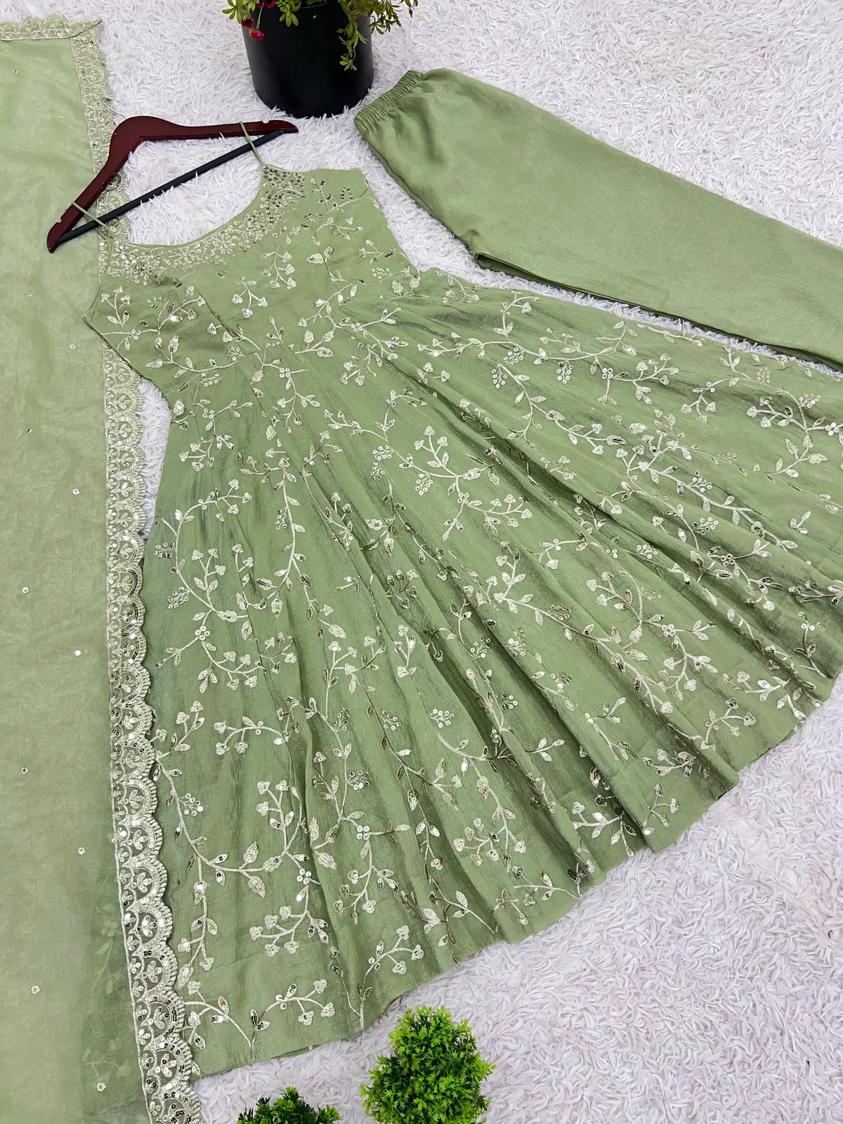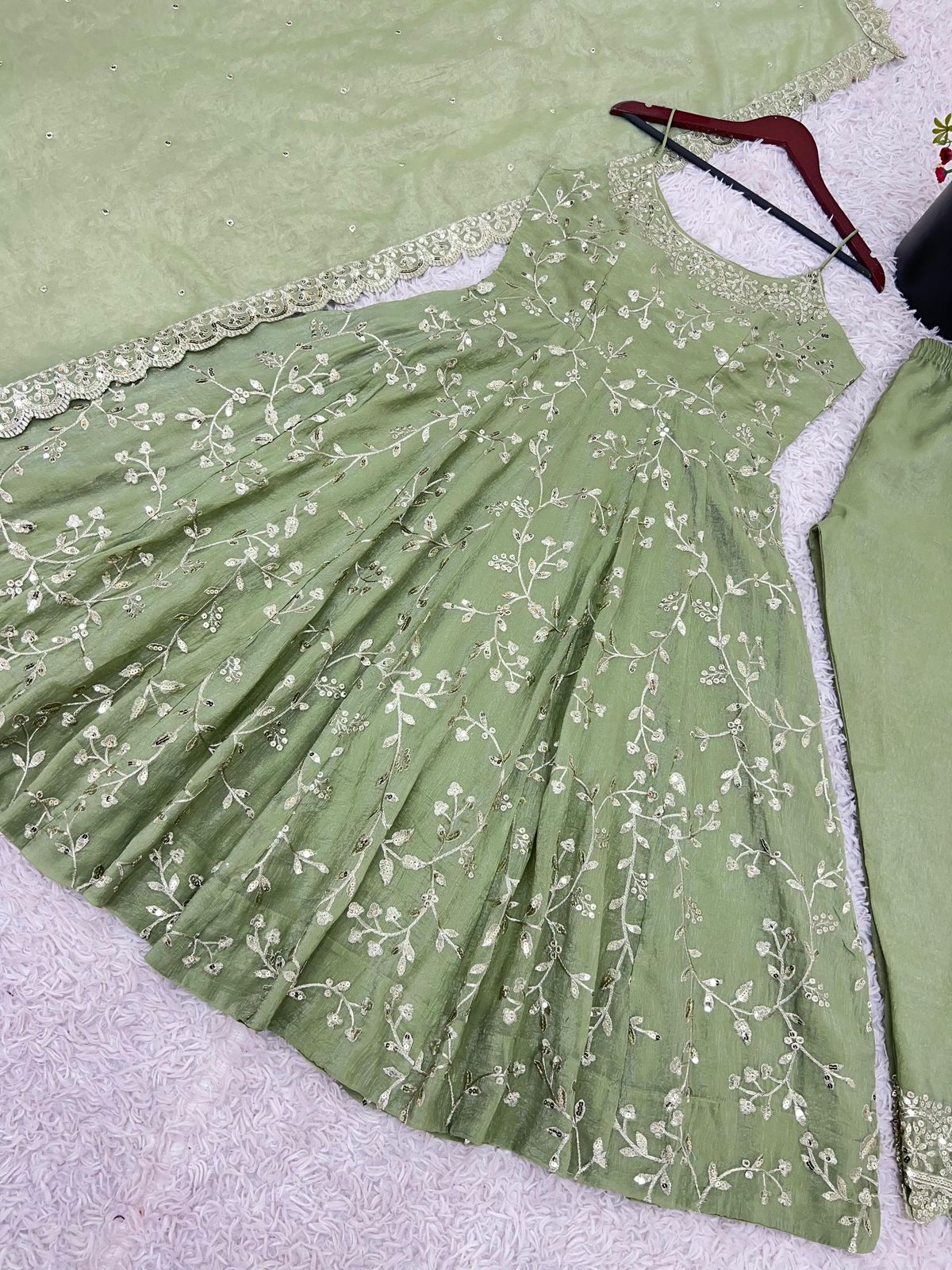 • Intricate thread and sequin embroidery