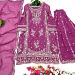 Dupatta: Heavy Faux Georgette Silk with Elegant Embroidered Lace Border. Dupatta Length: 2.20 meters.