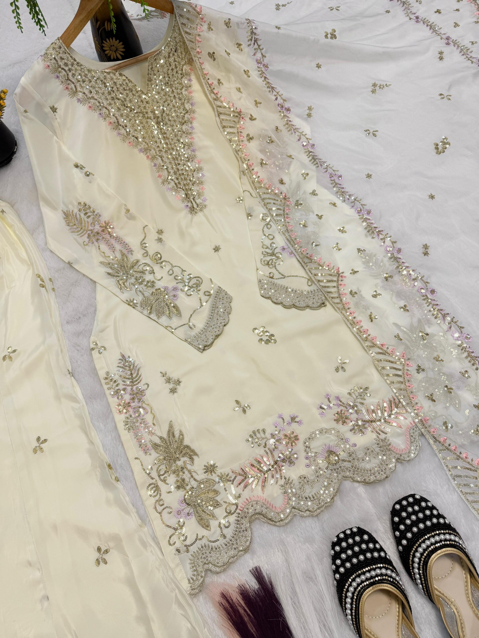 Faux Georgette Ensemble With Heavy Embroidery & Sequence Work