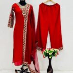 Designer Faux Georgette Top With Bottom and Dupatta Set