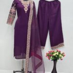 Festive Wear Chinon Silk Top, Dupatta & Palazzo Set