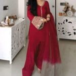 Elevate your festive style with this premium satin silk 3-piece suit set, designed with elegant embroidery and luxe detailing.