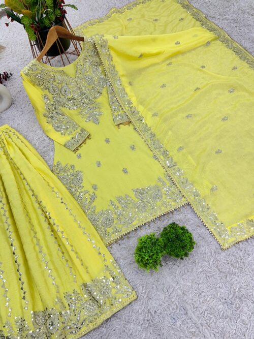 Festive Wear Chinon Silk Top, Dupatta & Gharara Set