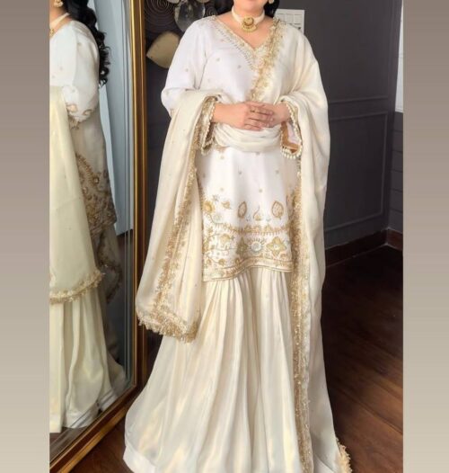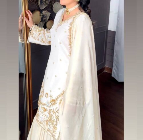 Sharara- Crepe fabric with beautiful embroidery and sequins work to match with Top.