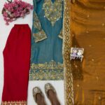 Enhance the elegance of your wardrobe with our newly launched Kurti–Pant Set paired with a luxurious Fendi Silk Dupatta!