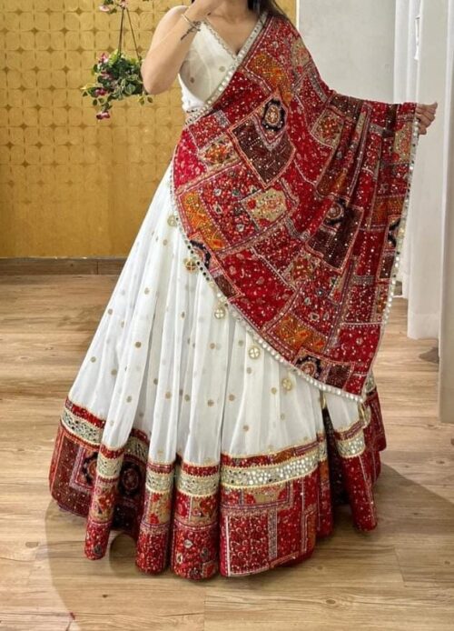 Celebrate this Navratri in elegance with our premium designer lehenga set, crafted with rich fabrics and intricate embellishments to make you stand out in every garba night!