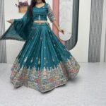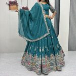 Choli – Made from Pure Vichitra Fabric. Embellished with Heavy Embroidery, Coding Sequence & Thread Work. Soft and breathable Micro Cotton Lining.
