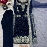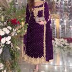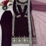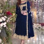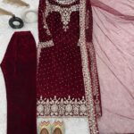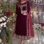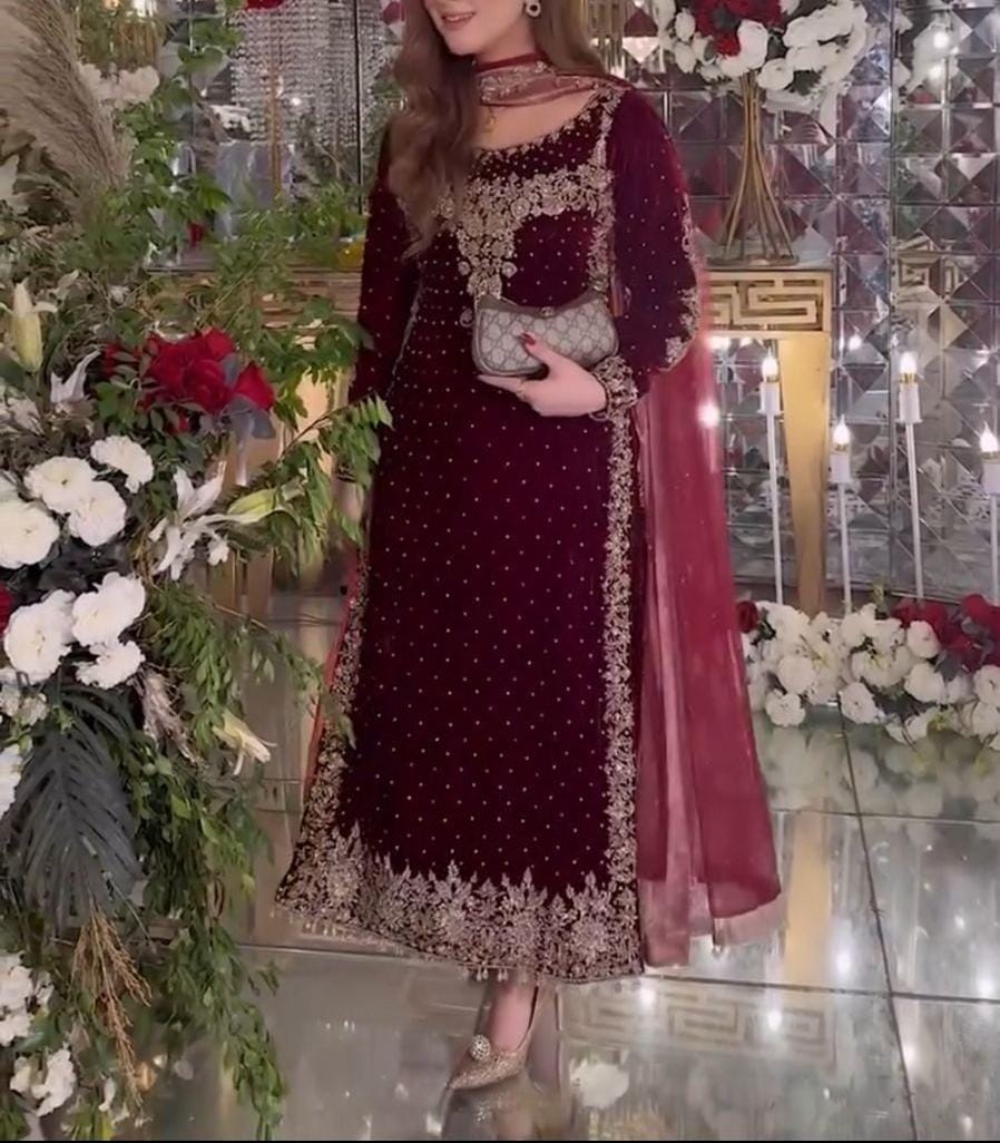 Pure Heavy Viscose Velvet with Heavy Embroidery Sequence Work and Moti Work on Neckline with Full Sleeves.