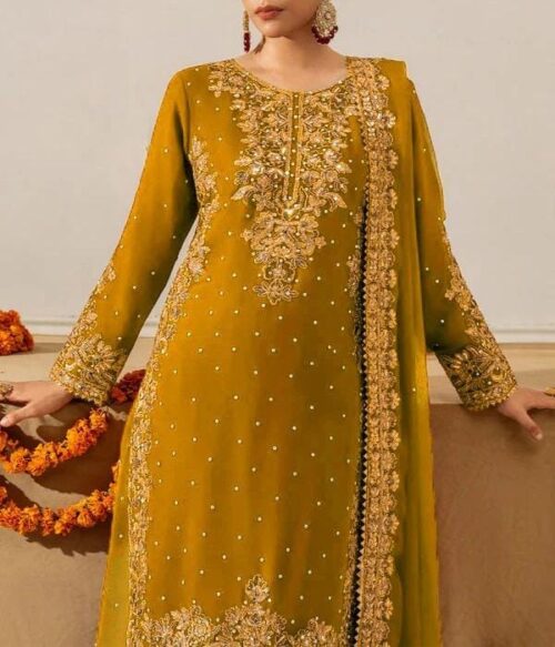 Classic Pure Chinon Silk Yellow Color Designer Gown