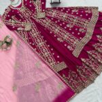 Elevate your elegance with this stunning lehenga crafted from luxurious faux georgette, adorned with embroidery and sequence work that adds a sparkling charm to every occasion.