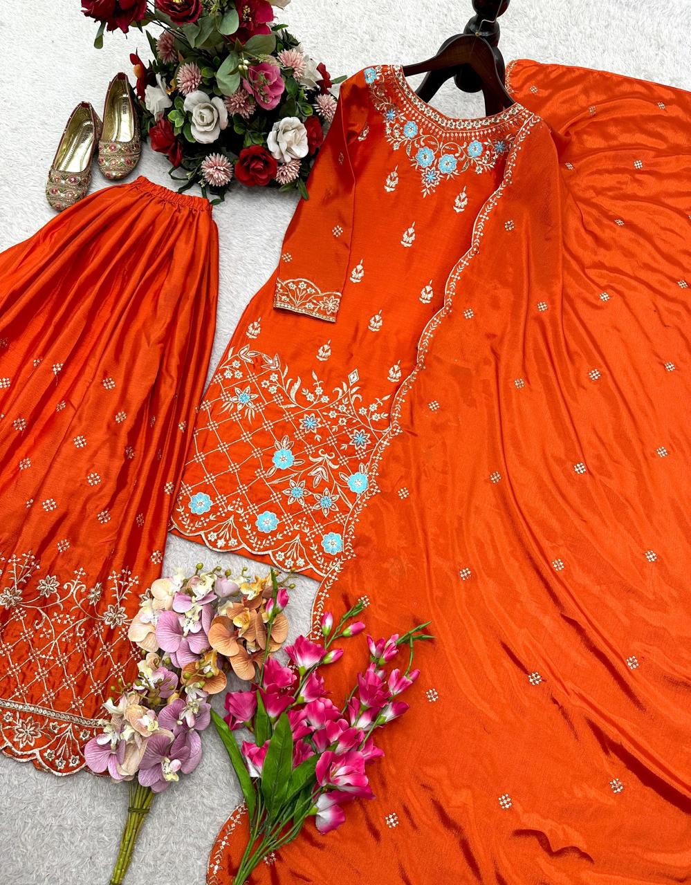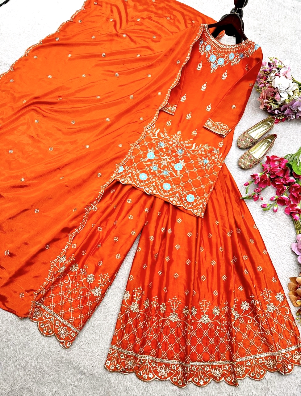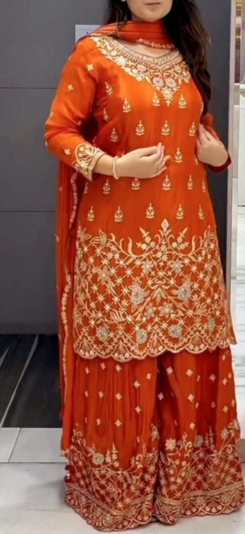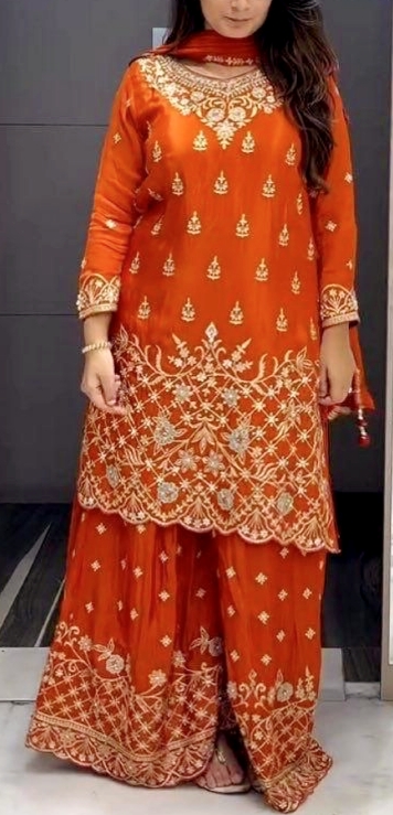 Special Chinon Silk Kurti–Sharara- Dupatta Set