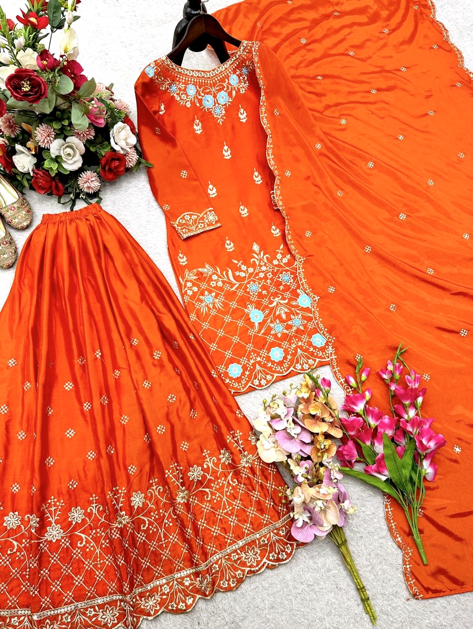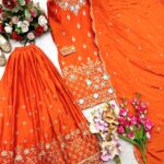 Grace your wardrobe with this premium ensemble crafted in rich Chinon Silk, beautifully adorned with Sequins Embroidery for a refined festive look.