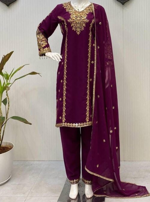 Includes Kurta, Pant & Dupatta with Elegant Sequin Embroidery Work.