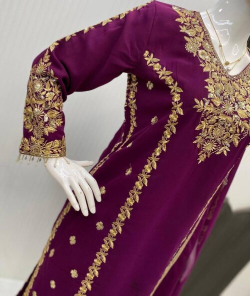Kurta – Premium Georgette with Sequin Embroidery. Inner Lining from Micro Cotton. Length is 40 inches.