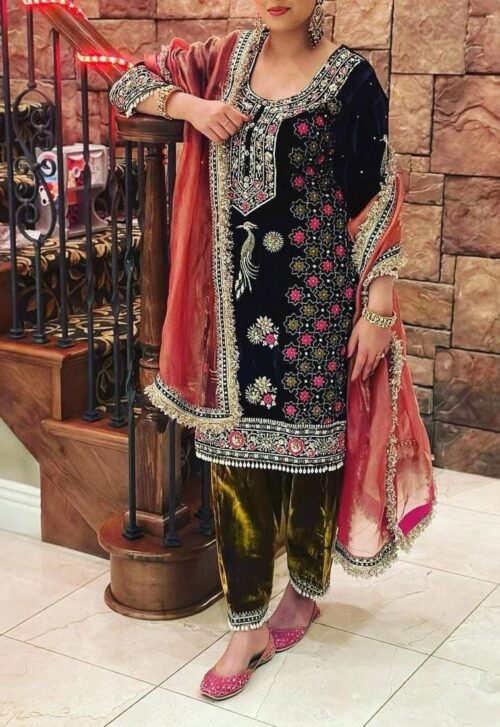 Velvet Elegance – Embroidered Designer Set