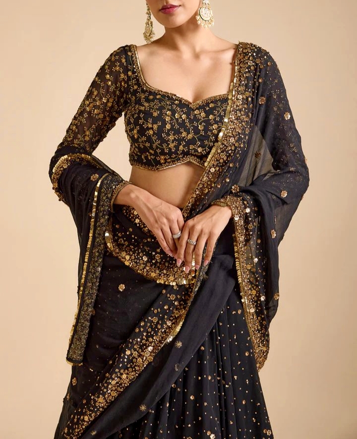 Blouse: Unstitched (Front & Back Heavy Work with Sleeves)