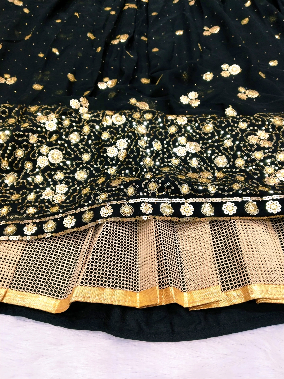 Featuring 3.5 meter flair, heavy cancan, and double inner covering for a graceful, royal look.