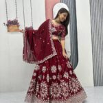 Drape yourself in this luxuriously embroidered lehenga choli, crafted from rich Vichitra silk and adorned with dazzling 7mm sequence work that sparkles with every step.