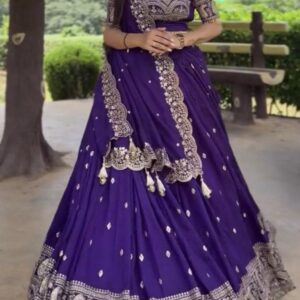 Drape yourself in this luxuriously embroidered lehenga choli, crafted from rich Vichitra silk and adorned with dazzling 7mm sequence work that sparkles with every step.