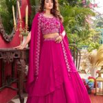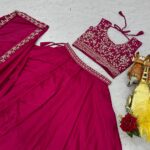 The flowing 3.5-meter flair adds a royal touch, while the fully stitched embroidered choli ensures a perfect, effortless fit.