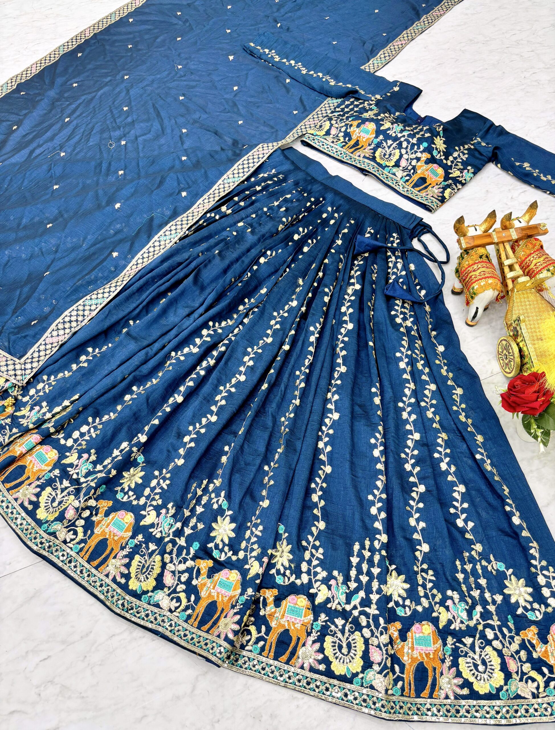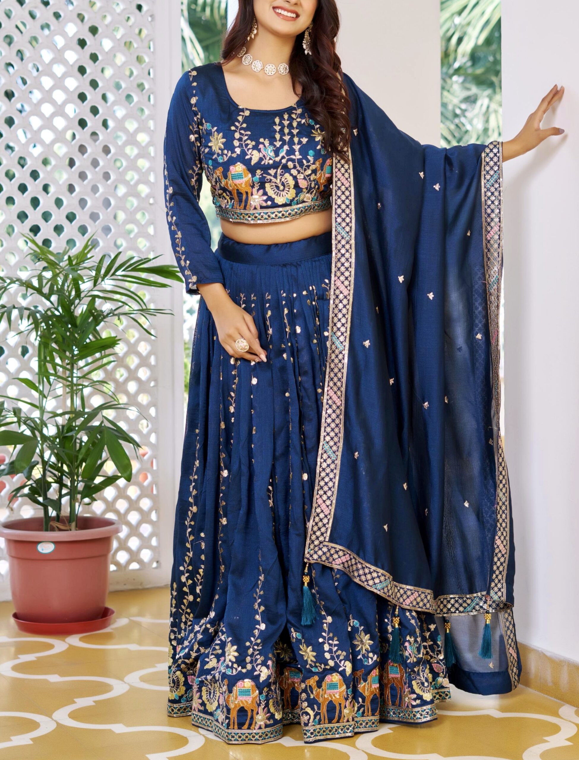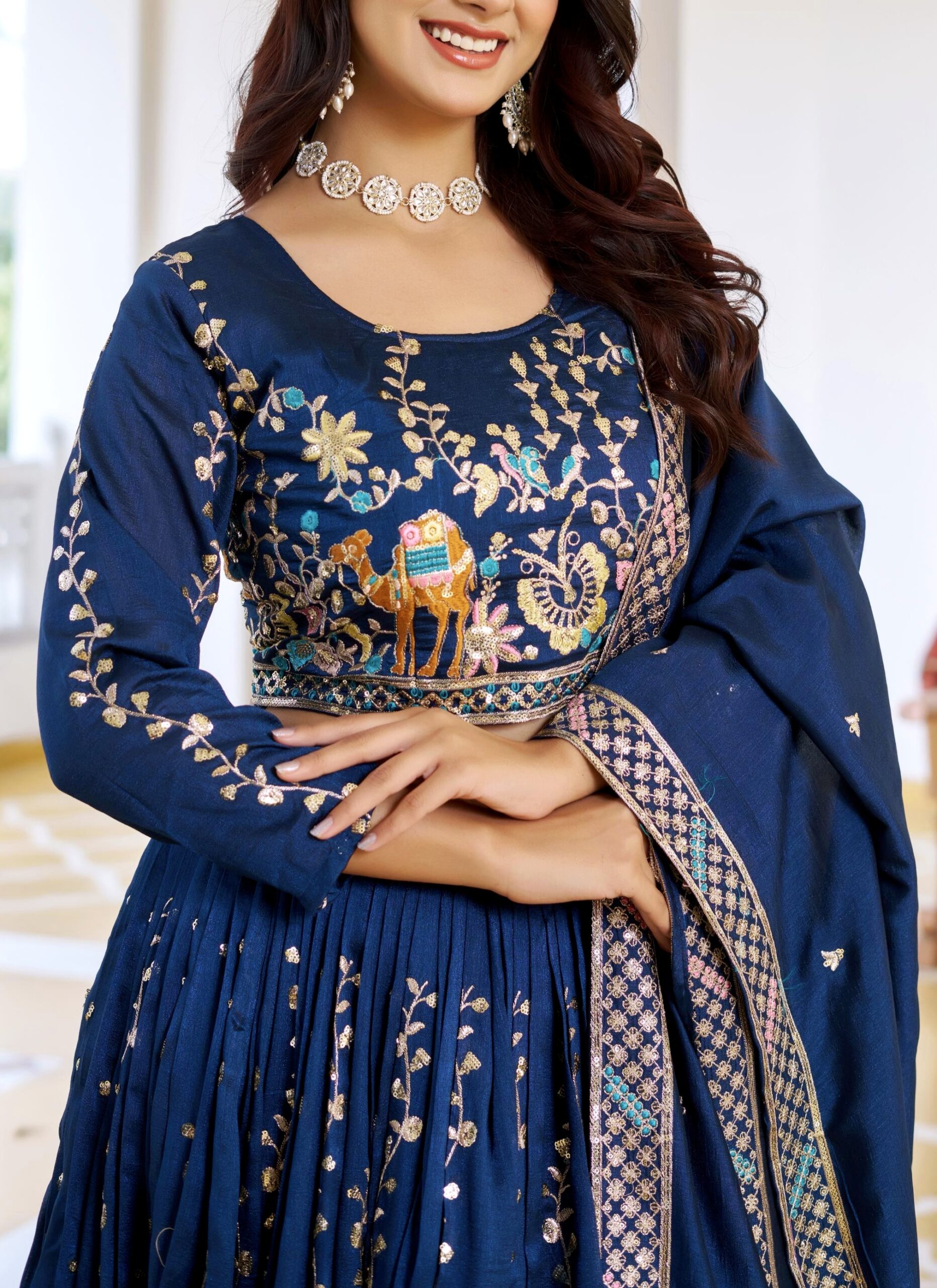 Fabric: Premium VichitraWork: Elegant Embroidery with 3mm Sequence WorkInner: Soft Micro Cotton for all-day comfortFS that fits up to XXLΒ