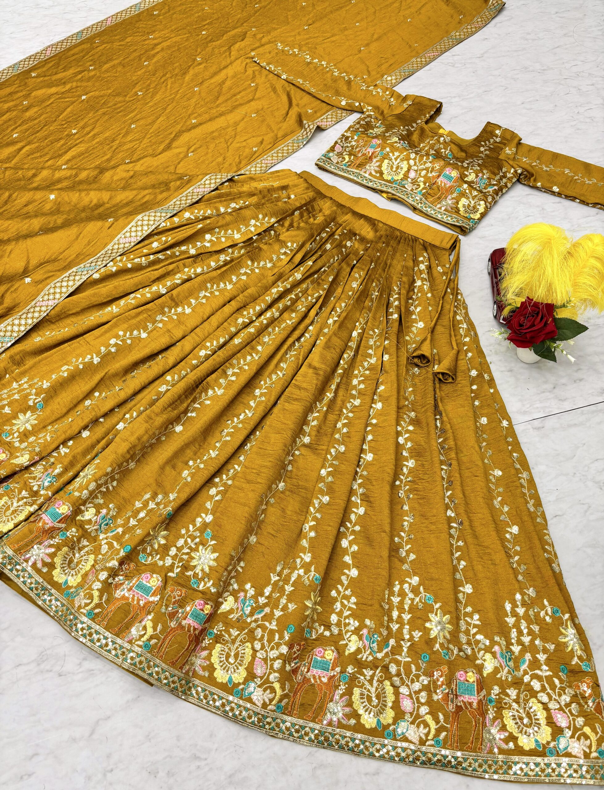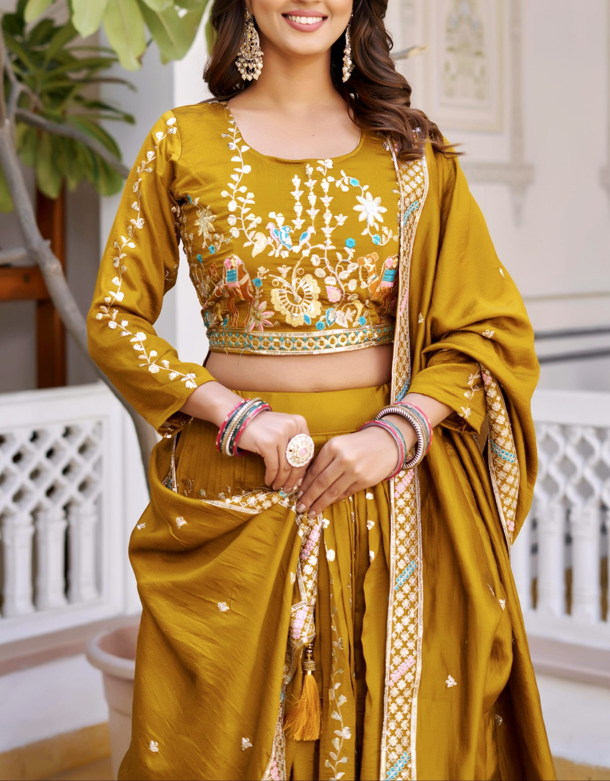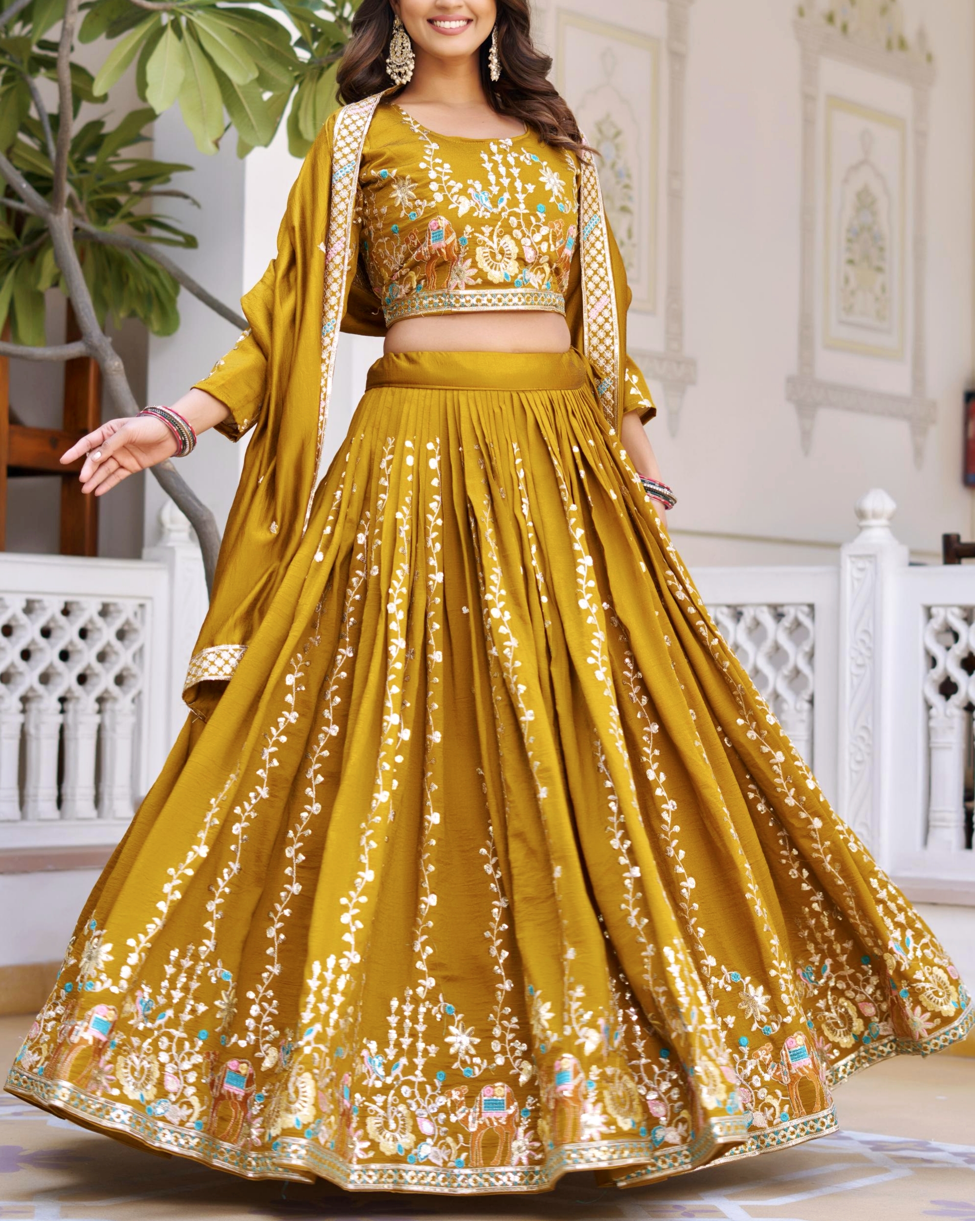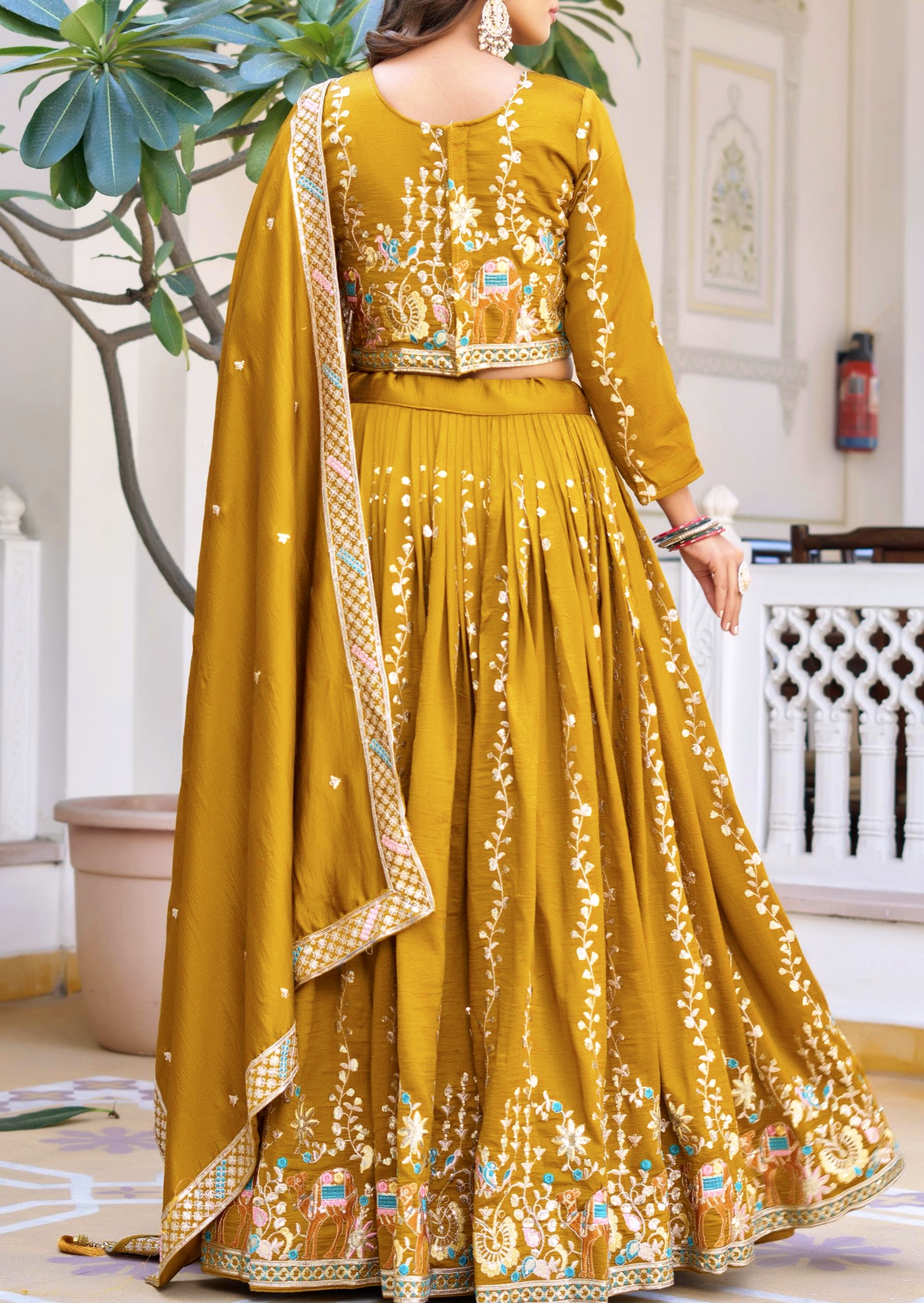 Fabric: Premium VichitraWork: Elegant Embroidery with 3mm Sequence WorkInner: Soft Micro Cotton for all-day comfortFS that fits up to XXLΒ