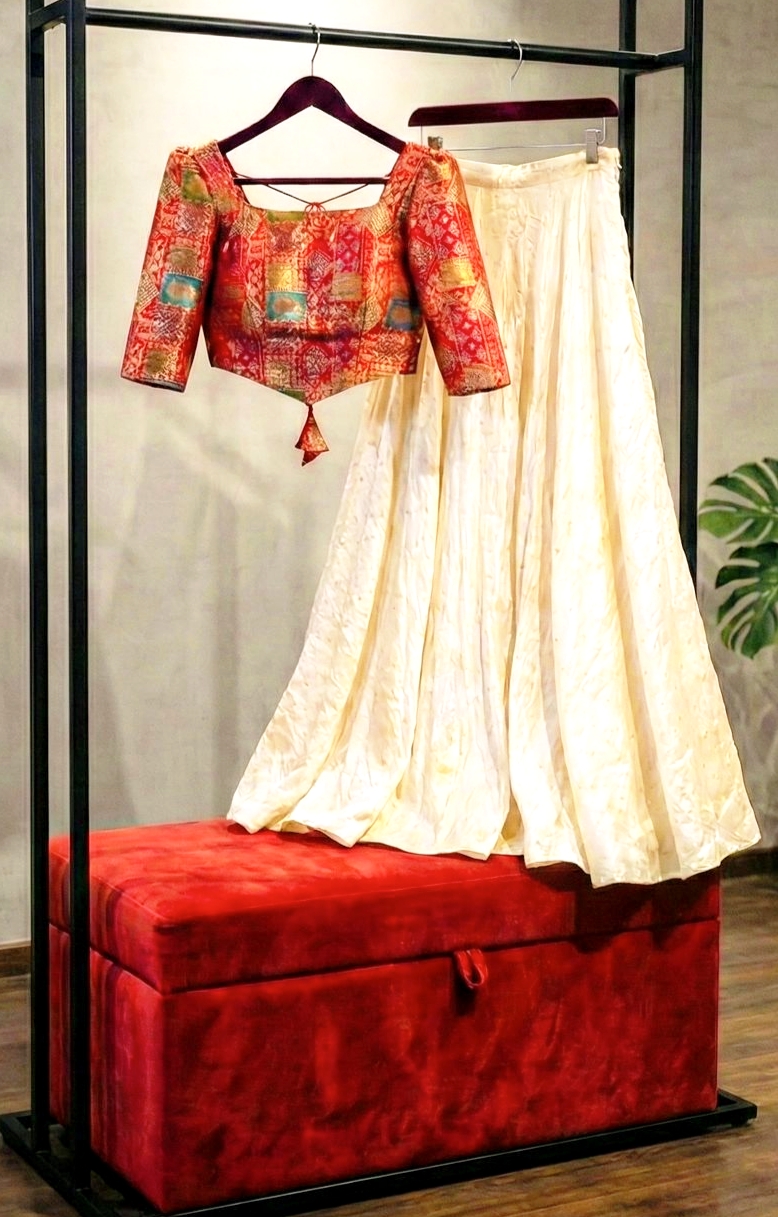 Step into timeless elegance with the Rangrez Ivory Lehenga, where tradition meets couture. This meticulously crafted ensemble exudes sophistication, perfect for those who cherish grace and understated glamour.