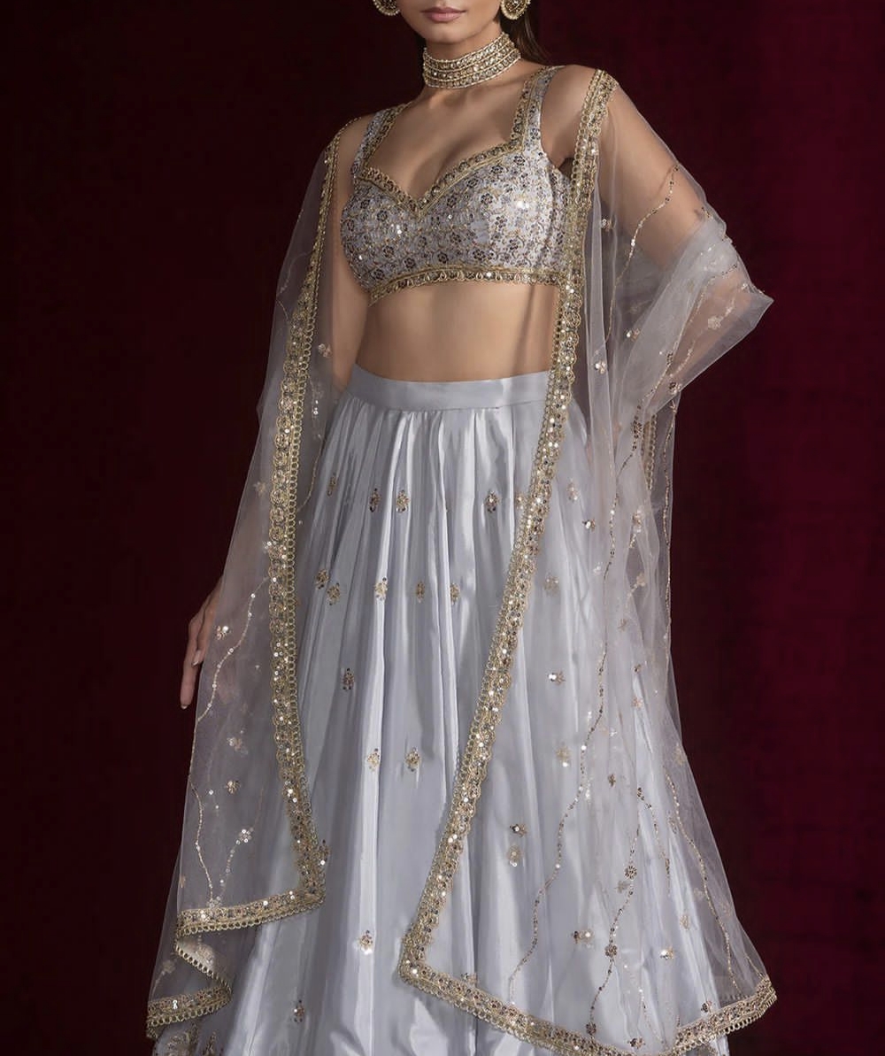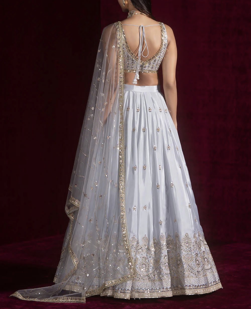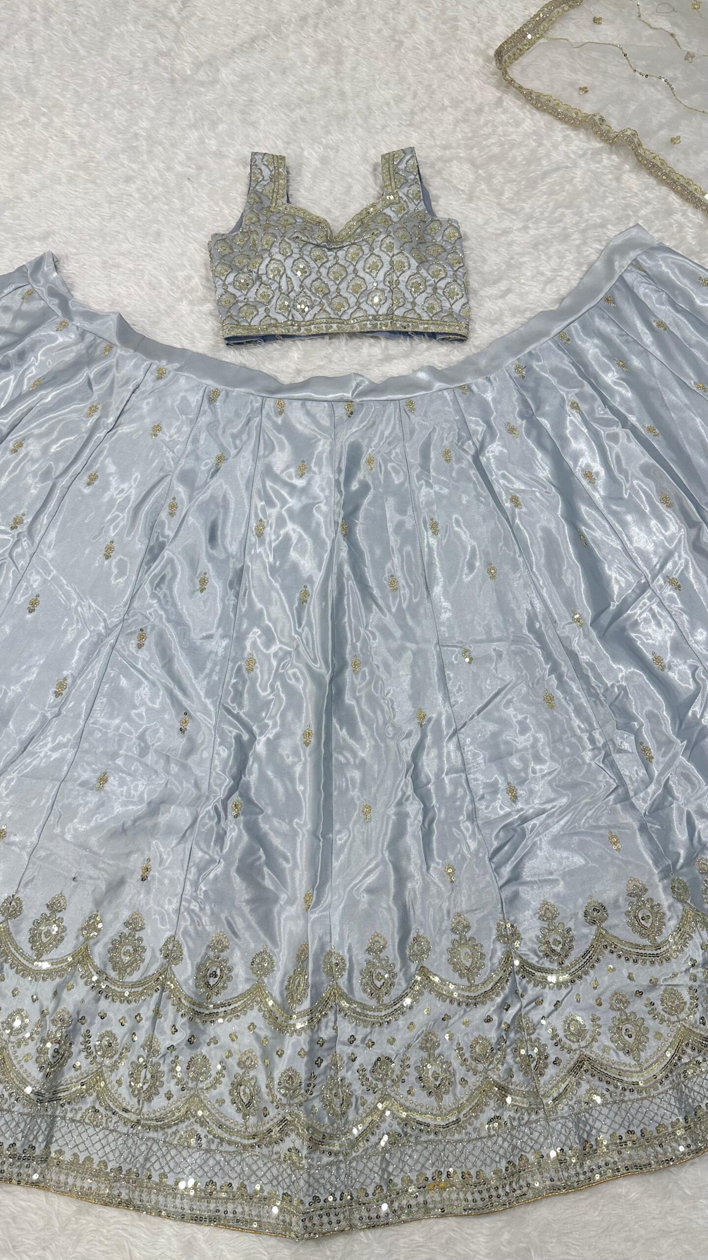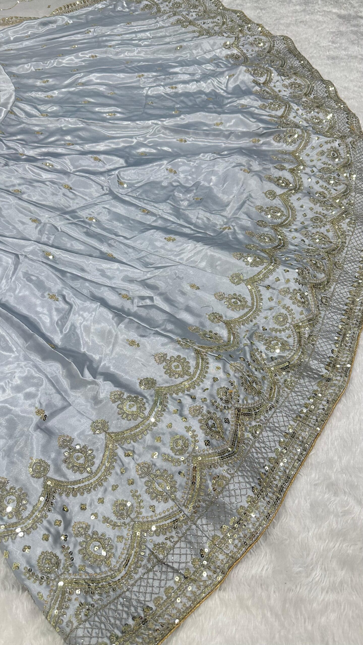 Satin Silk Lehenga with exquisite Sequins, Dori & Zari Work.