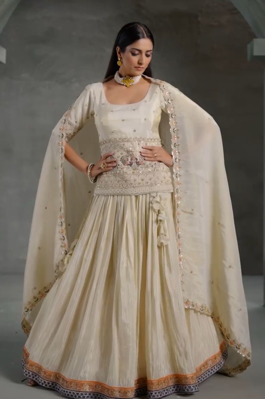 Stylish Embroidered Crop Top Lehenga Set
