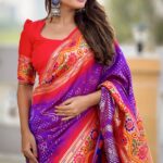 Saree: Adorned with a rich Meenakari weaving pallu.