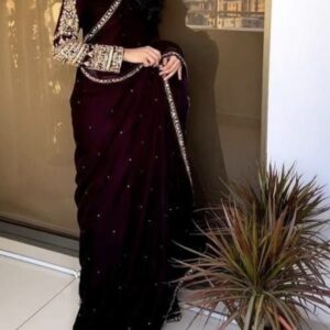 Turn every entrance into a Bollywood moment with this breathtaking sequin crush pleated saree crafted in luxe faux georgette and adorned with dazzling 5mm sequins, this beauty flows like a dream and shines with every step.