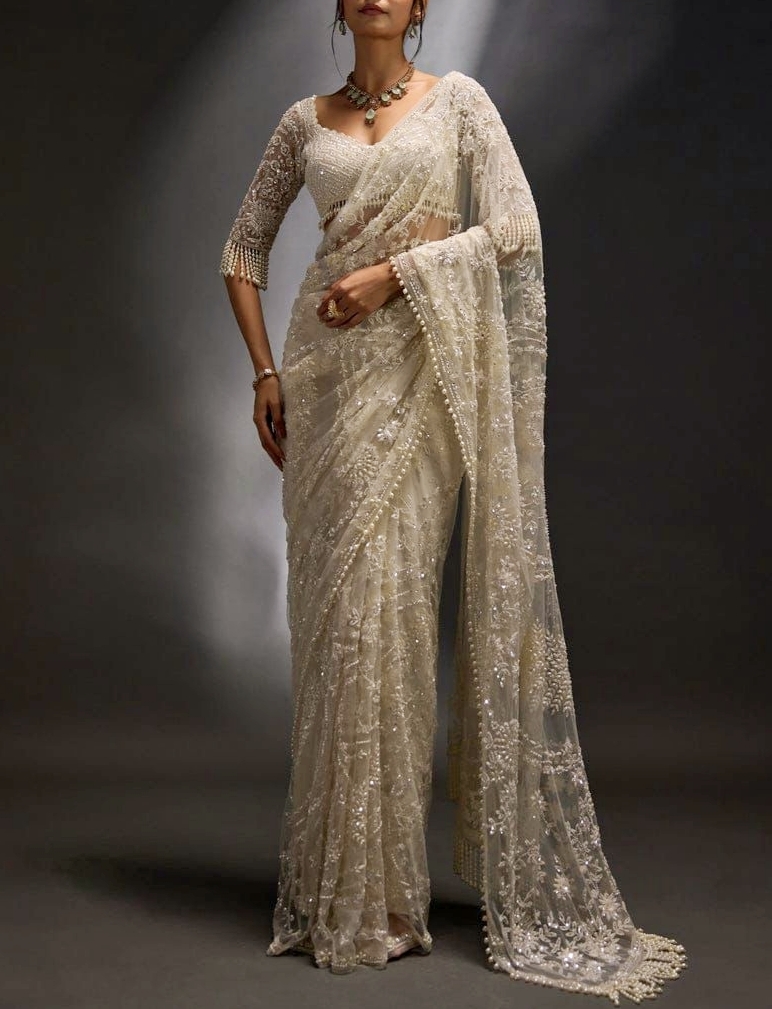 Turn heads with this glamorous designer saree crafted for weddings, parties, and festive occasions.