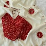 Rayon digital Bandhani print blouse with handwork