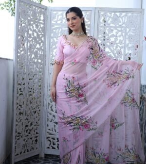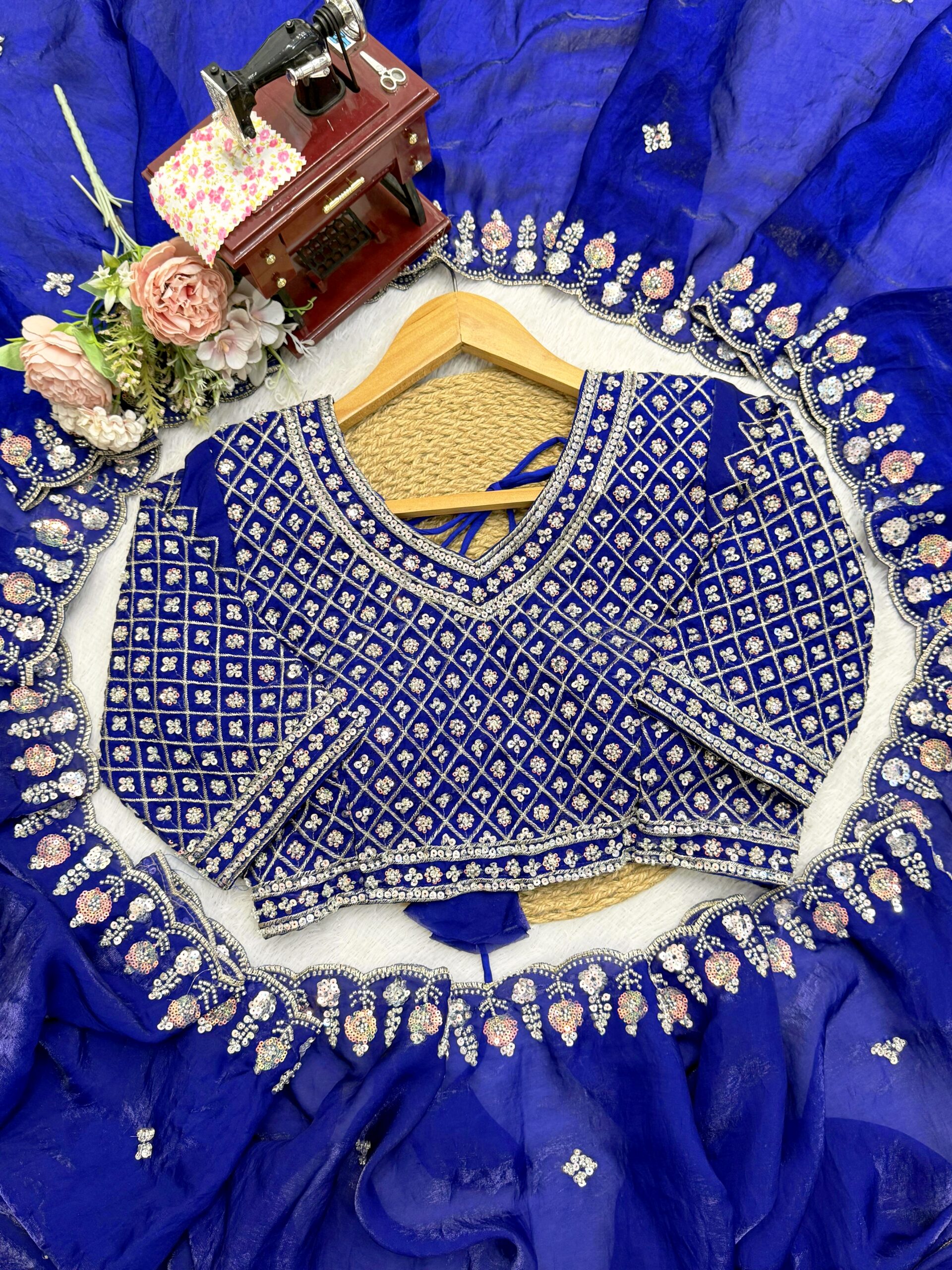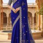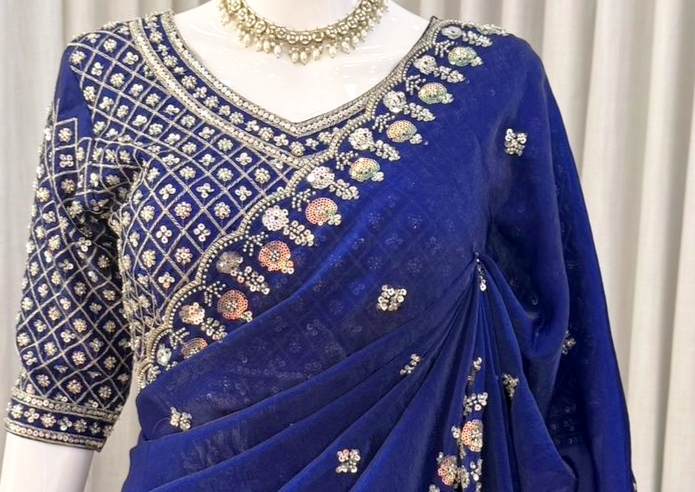 Step into timeless elegance with this luxurious designer saree, crafted in a rich, captivating hue. Intricately adorned with premium bead, thread, and sequin detailing, this piece reflects refined craftsmanship and boutique-level finesse.