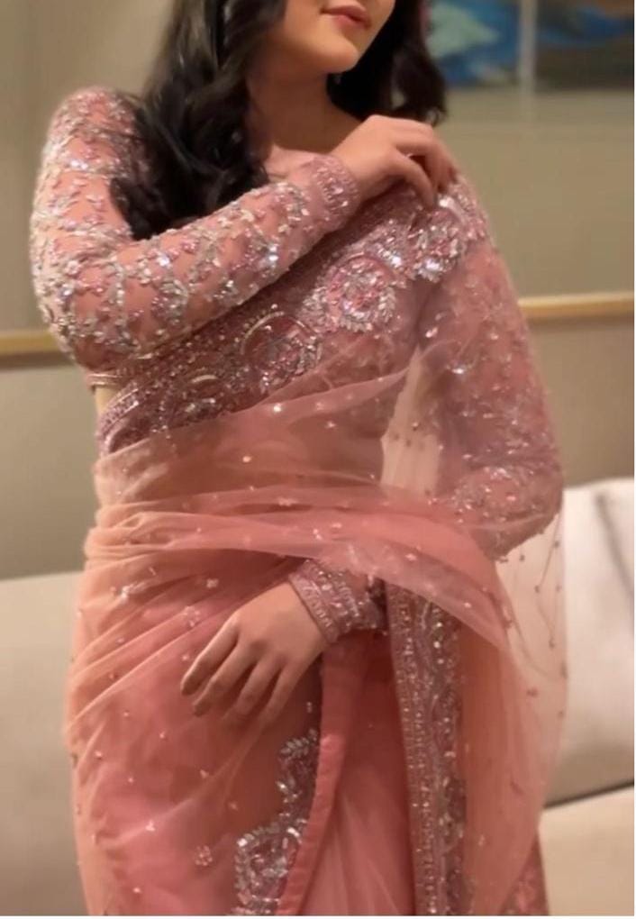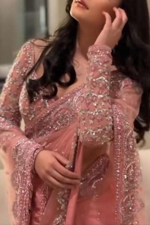 Premium Butterfly Net fabric, beautifully embellished with intricate embroidery, sequins work, and jari work. Features a rich C Pallu design for a graceful look.