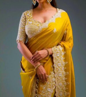 Work: 3mm Coding Work on Pallu, All-over Embroidery, and Elegant Cutwork Border.