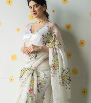 Work: 3mm Coding Work on Pallu, All-over Embroidery, and Elegant Cutwork Border.