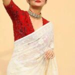 Saree Fabric: Premium Georgette adorned with delicate 3 mm sequin detailing and intricate embroidery work, adding just the right touch of sparkle and sophistication. Length is 5.60 meters.