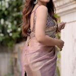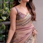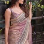 The sparkling charm of this contemporary saree comes from its intricate handcrafted embellishments, beautifully spread across the drape, making it perfect for festive occasions or special events.