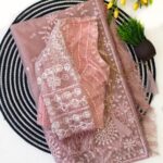 Unstitched Net Blouse with Heavy Front & Back Embroidery & Sleeves.